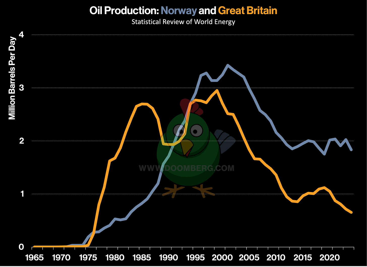 As decades passed and successive governments doubled down on a costly green energy transition, taxes and regulations on oil and gas companies doing business in Britain steadily ratcheted upward. Today, the system has become outright punitive: the combined marginal tax rate on income from British oil and gas extraction sits at 78%. Unsurprisingly, drilling activity is grinding to a halt, and the once-mighty British North Sea is in steep decline. Last year, Norway nearly tripled Britain’s oil production: