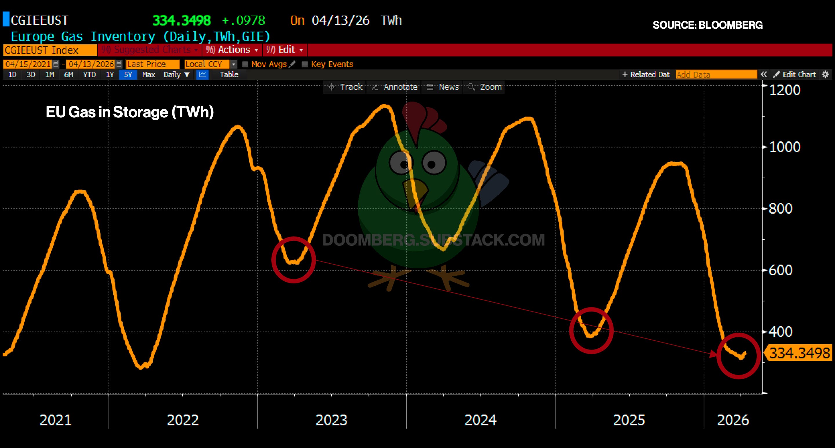 Those 170 TWh of power would come in handy for the European Union (EU) now, as it stares down the barrel of what looks increasingly likely to become the greatest energy crisis of this generation. While much attention will understandably be paid to upcoming regional stockouts of jet fuel and diesel—and the degradations to modern life they will trigger—a slower-rolling yet equally challenging crisis is unfolding. In a scandal that defies belief, the member states of the EU have exited the winter of 2025–2026 with disastrously low stores of natural gas just as the war in Iran has closed the Strait of Hormuz, taking 20% of the world’s supply of liquefied natural gas (LNG) offline.