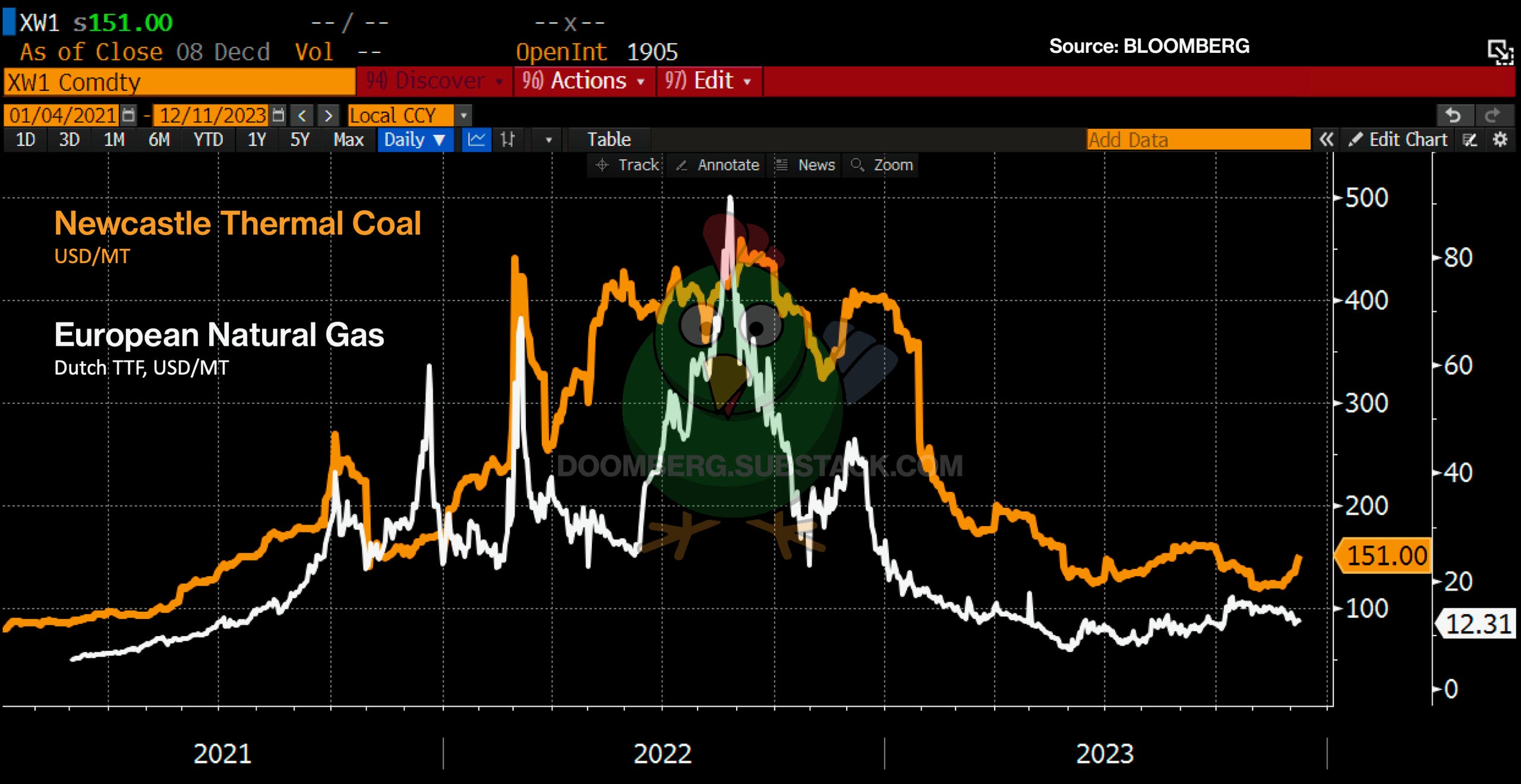 The implication here is that China has built a large stockpile of coal recently just as the weather turned implying much weaker fossil import demand until the weather changes again or those inventories are worked off.”
